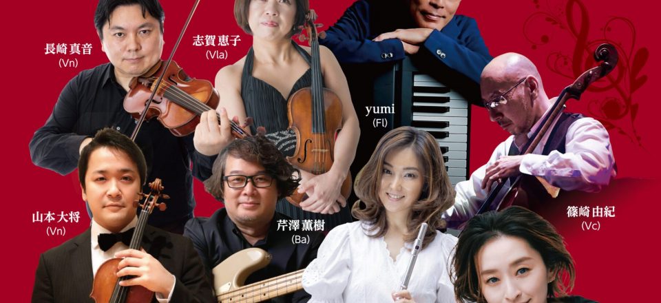 長崎 真音(Vn)、山本 大将(Vn)、志賀 恵子(Vla)、篠崎 由紀(Vc)、芹澤 薫樹(Ba)、yumi(Fl)